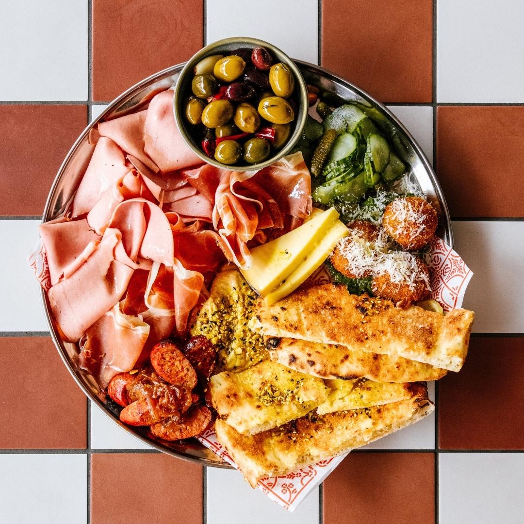 Cured meats, cheese, flatbread, arancini, pickles, roasted nuts and olives. Perfect for sharing between 2-3, or for one very hungry punter.